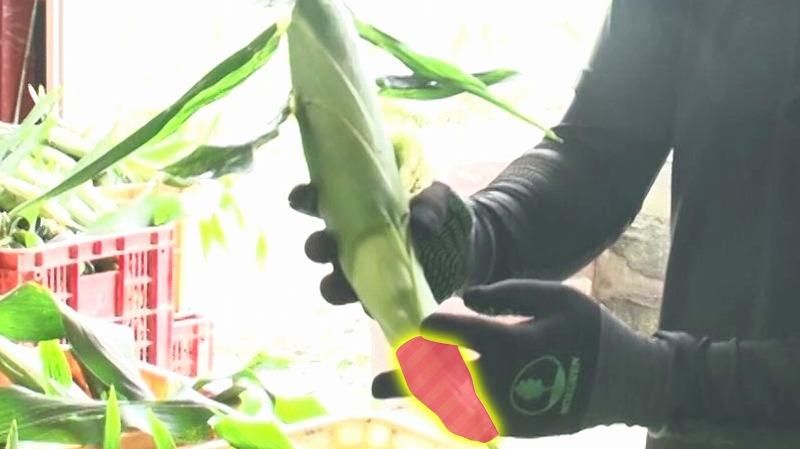 まず私が行う作業は「トウモロコシの“ケツ切り”」です!