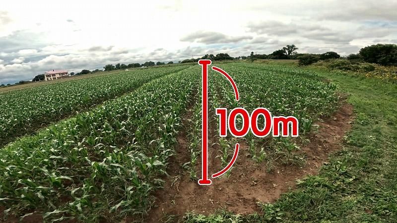 1ヘクタールの畑と、3ヘクタールの畑で収獲時期をずらして、トウモロコシを育てています。