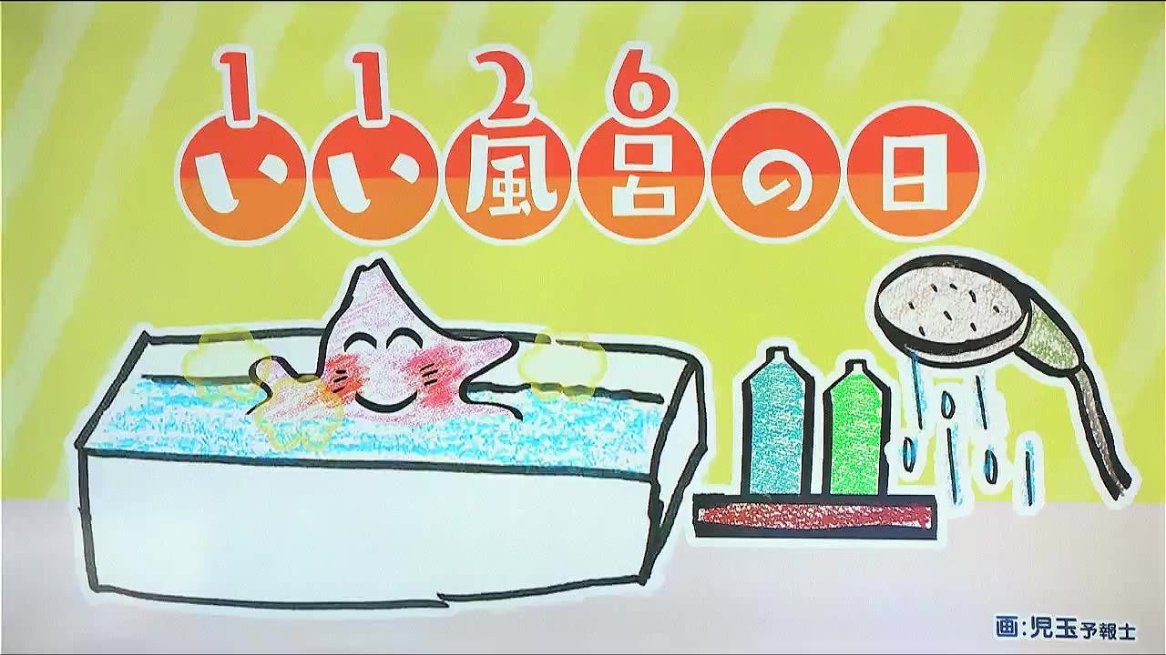 11月26日、きょうは語呂合わせで「いい風呂の日」ですね。寒くなってきたので、しっかり体を温めて、風邪予防をしたいですね。脱衣所を暖めるなどヒートショックにも気を付けましょう。さて、湯船に浸かっているのは・・・北海道くんです。