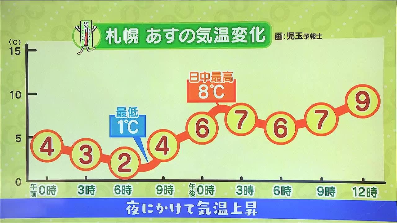 北海道が温まっている。これにはちゃんと意味があります。あす27日(木)の札幌の気温変化を見てみると…