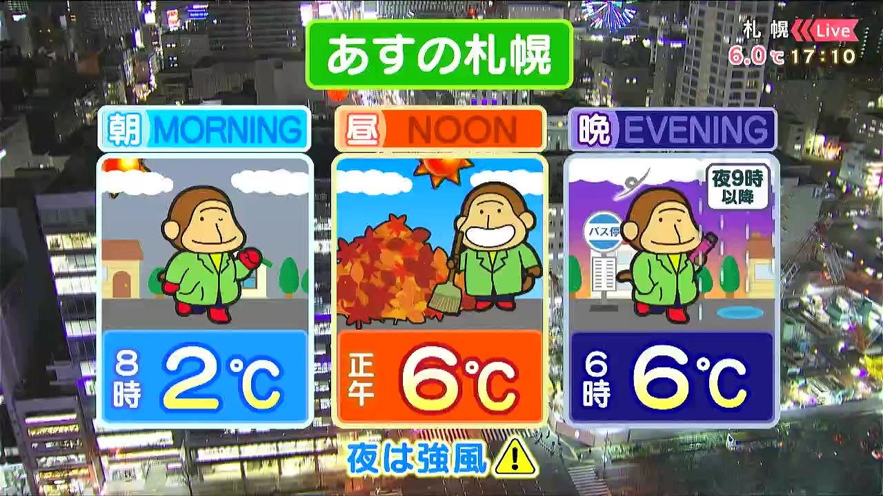 あす27日(木)の札幌です!朝昼晩の天気をもんすけでお伝えします!