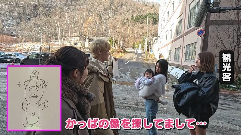 新くん:「いま大丈夫ですか。かっぱの銅像を探していまして、見たことあります?ある?」