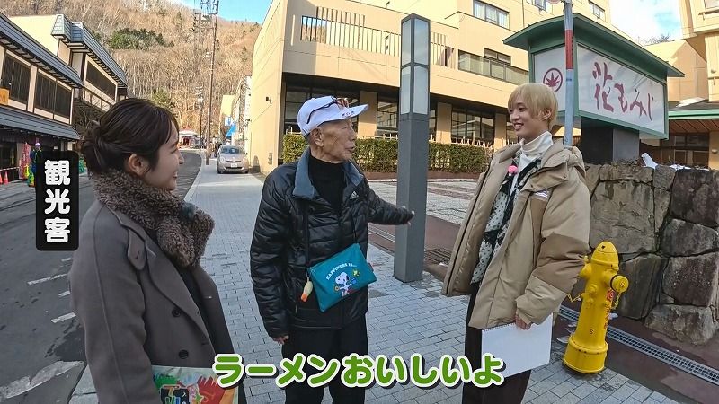 観光客:「なるほど。地元ではないからな。そこに泊まっている。ラーメン食べに来た。ラーメンおいしいよ!」