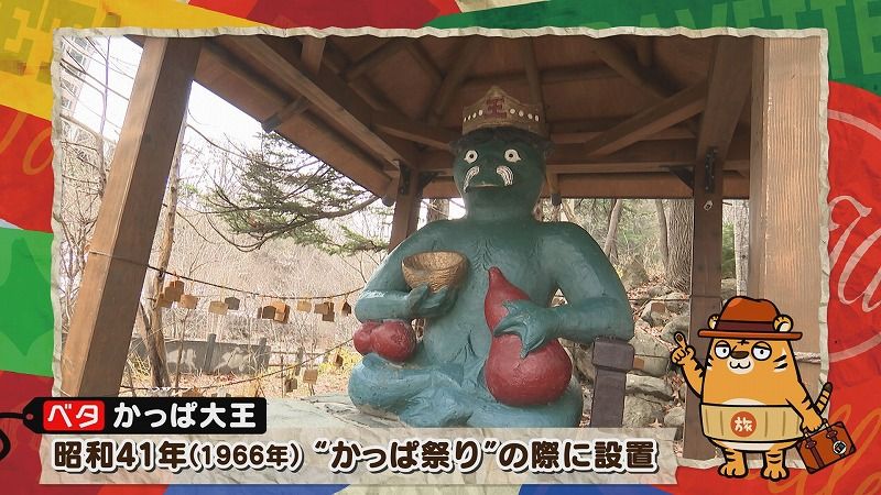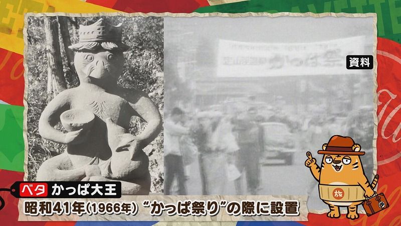 昭和41年に行われた「かっぱ祭り」の際に設置され、それ以降、温泉街のシンボルとして、長年親しまれているんだ!