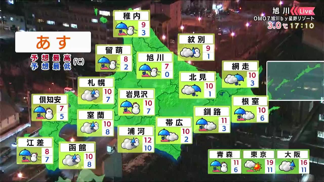 旭川では雪はほぼなくなりましたね。積雪はゼロになっていますが、またあす28日(金)夜から雪が積もりそうです。路面状況の変化にも注意して下さい。