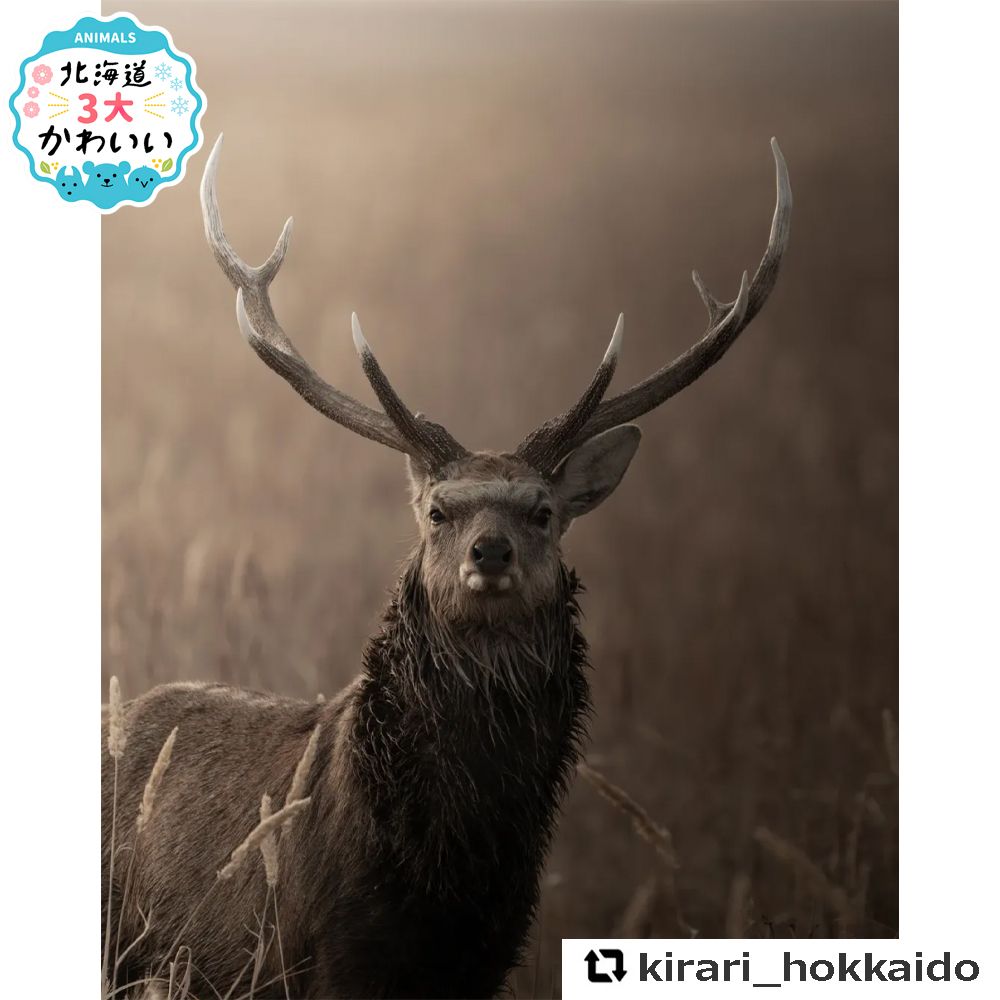 このお写真のキャプションに「ふさふさな首元と角が立派な雄鹿。首元が濡れてるのはヌタうちしてきたのかな?」とありました。