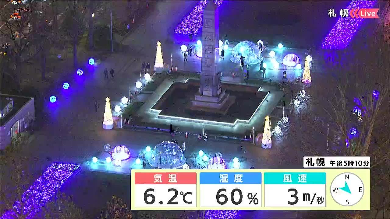 ホワイトイルミネーション。来週は街の風景だけでなく天気も冬らしくなりますね。