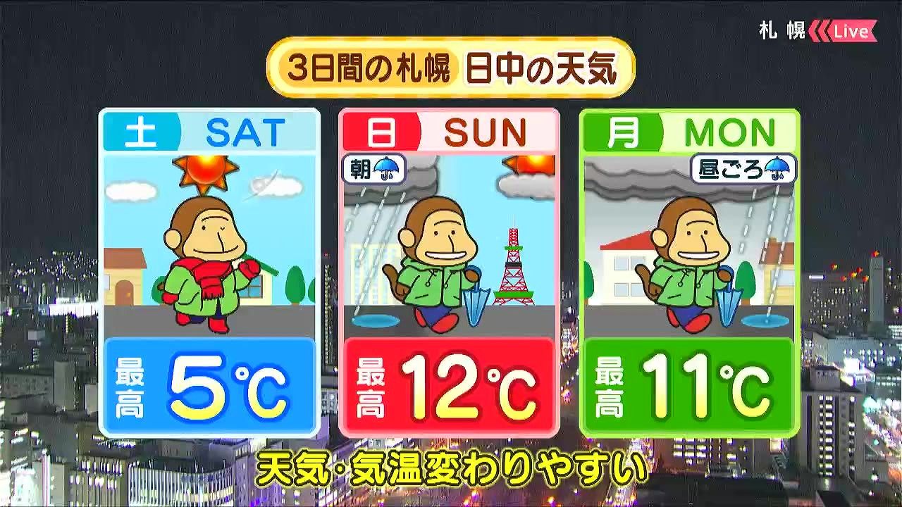 3日間の札幌です! 土日月の天気をもんすけでお伝えします!