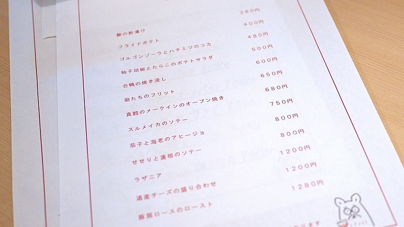「当店はあくまでワインがメインで、食事はワインのアテを求めているお客様が多いので、その要望に応えるべくおつまみを用意しています。最近は魚介系の料理が人気で、よく出ていますよ」