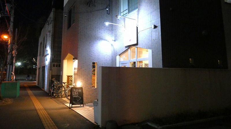 表通りには面していますが、入口自体が少し奥まっており、駅から歩いて向かうと看板の照明が先に目に留まります。