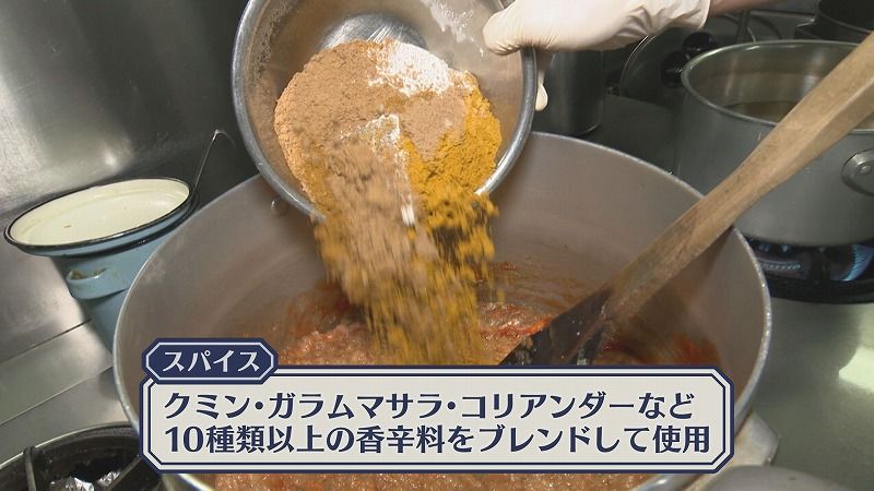 そこへ、2種類のカレーパウダーをはじめ、数種類の多彩なスパイスが味の深みを与えます。