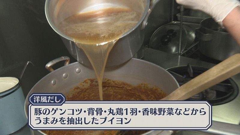 カリー軒のカレーを支えるのは、和風と洋風、2つのだしを合わせた唯一無二のスープ。