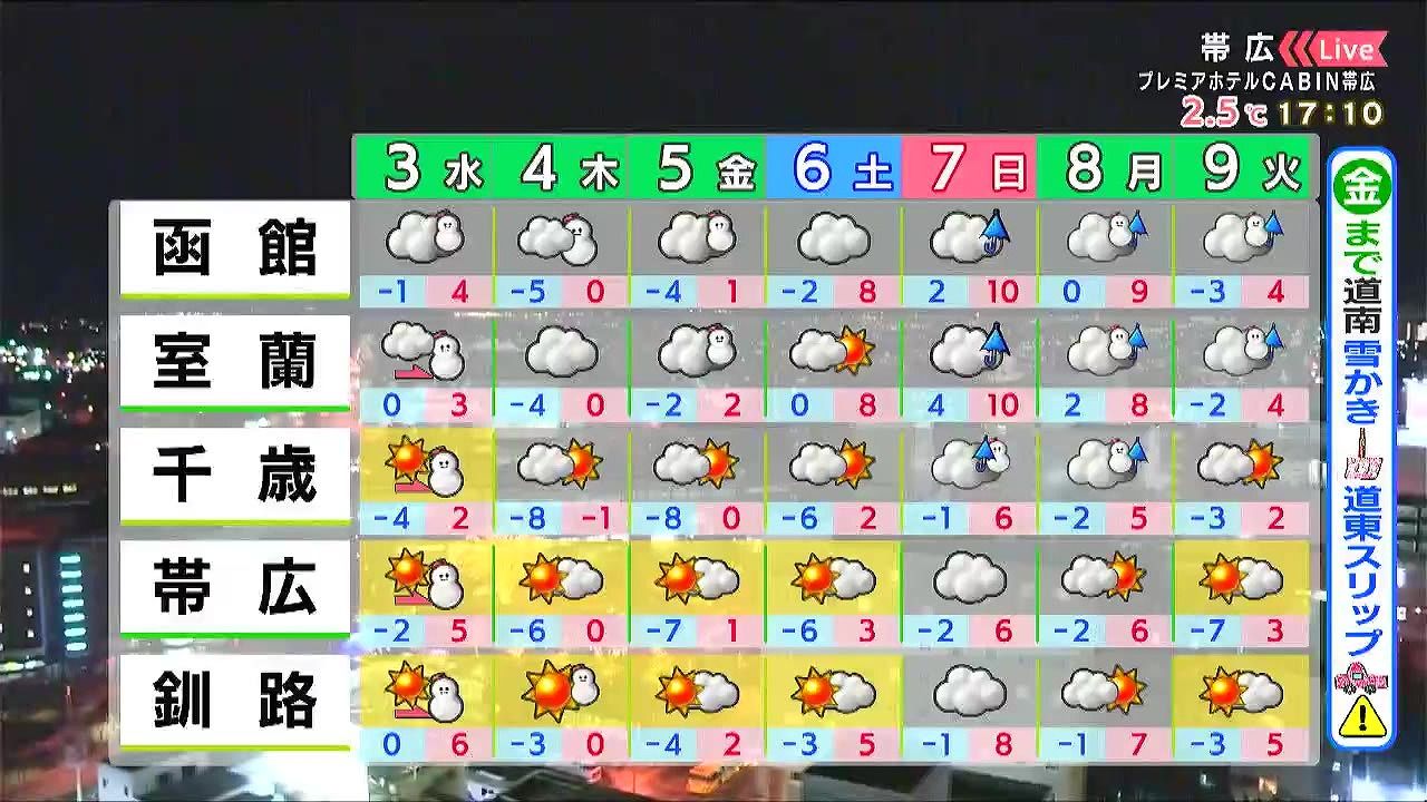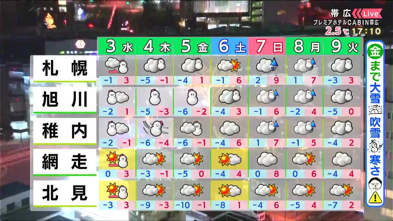 ※3日午後5時時点の情報です。最新の気象情報は、HBCウェザーセンターのホームページなどでご確認ください。HBCは気象庁の認可を2001年に得て以来、民間気象会社の一つとして「HBCの独自予報」を発信しています。