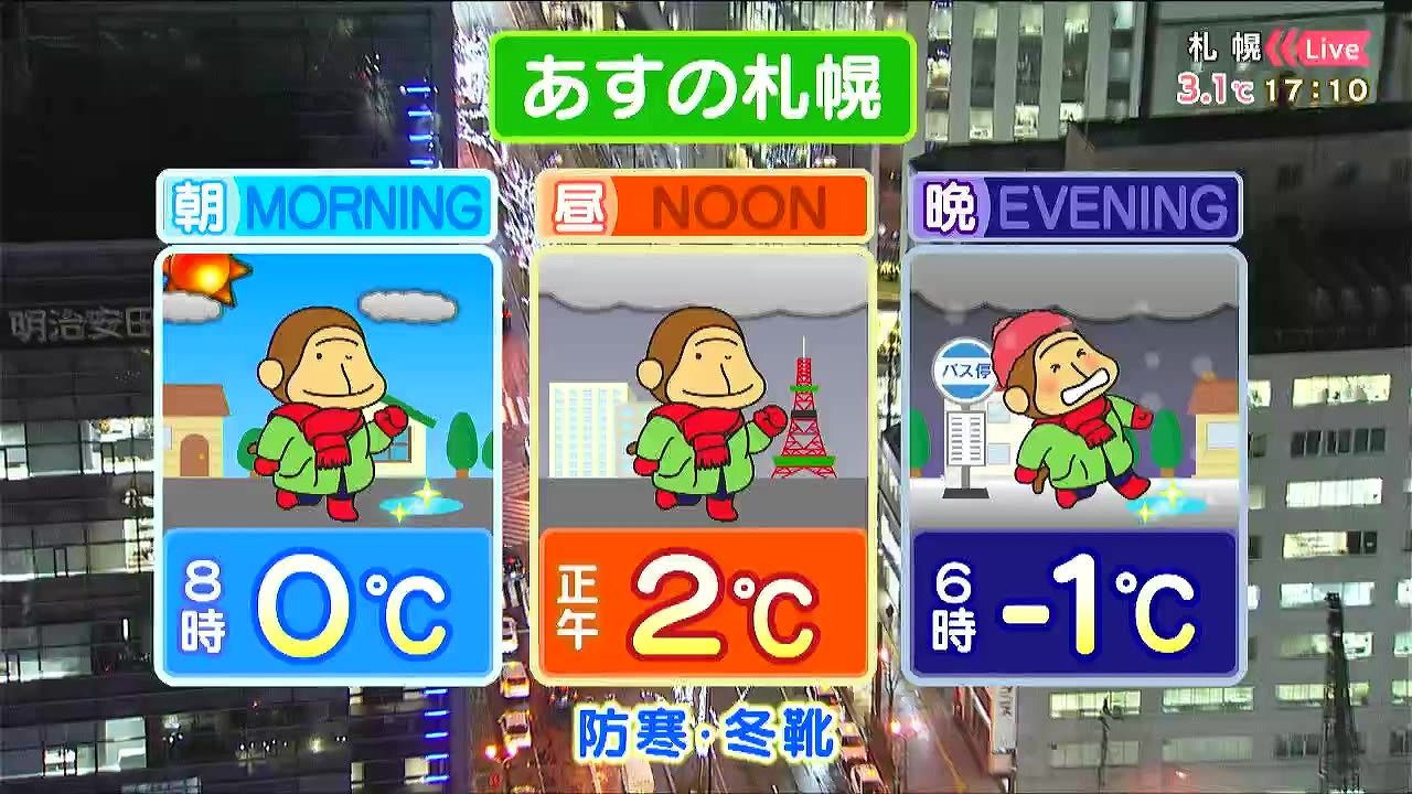 あす3日(水)の札幌です!朝昼晩の天気をもんすけでお伝えします!