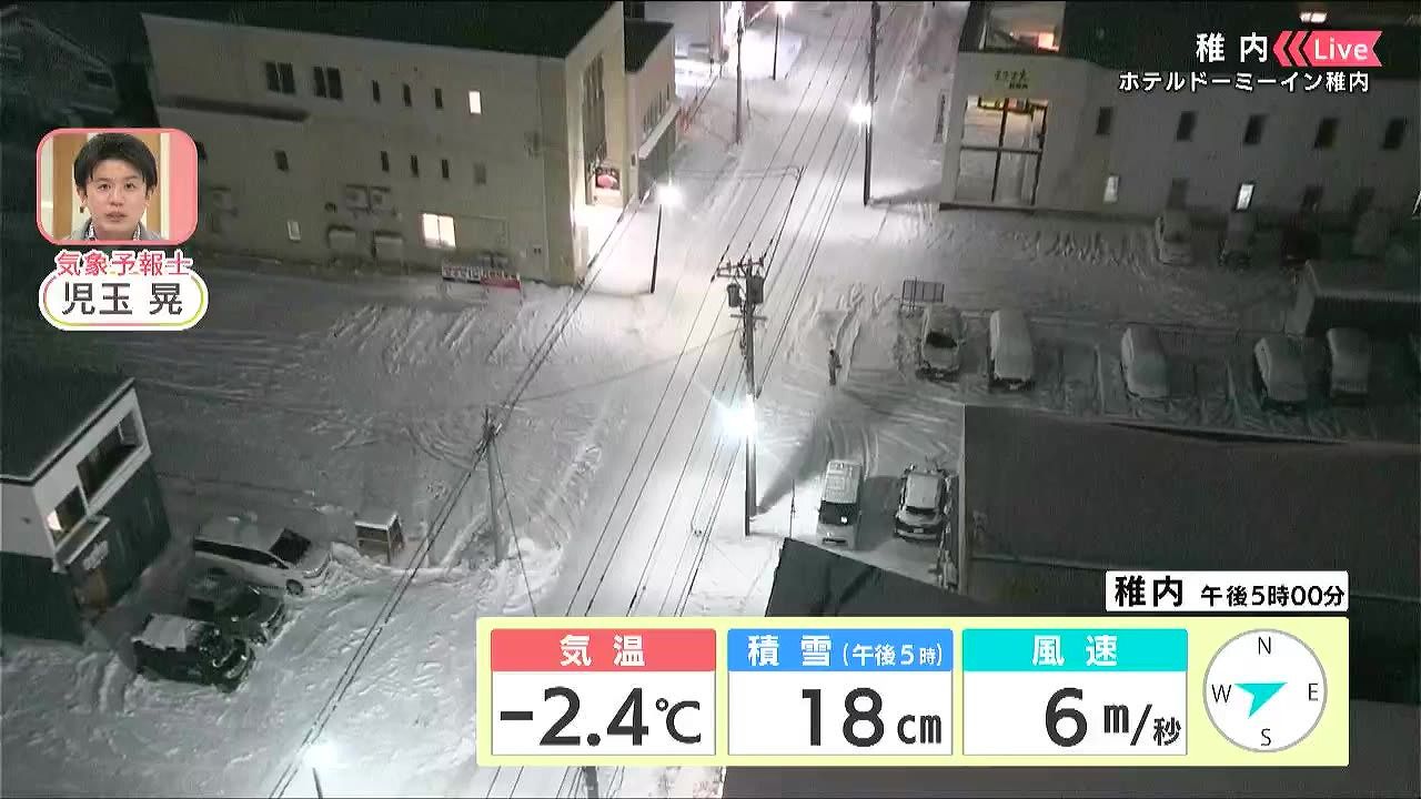 稚内ではこの冬初めて10センチ以上の積雪を観測し、この時間は18センチです。道内、あす4日(木)にかけて大雪になります。