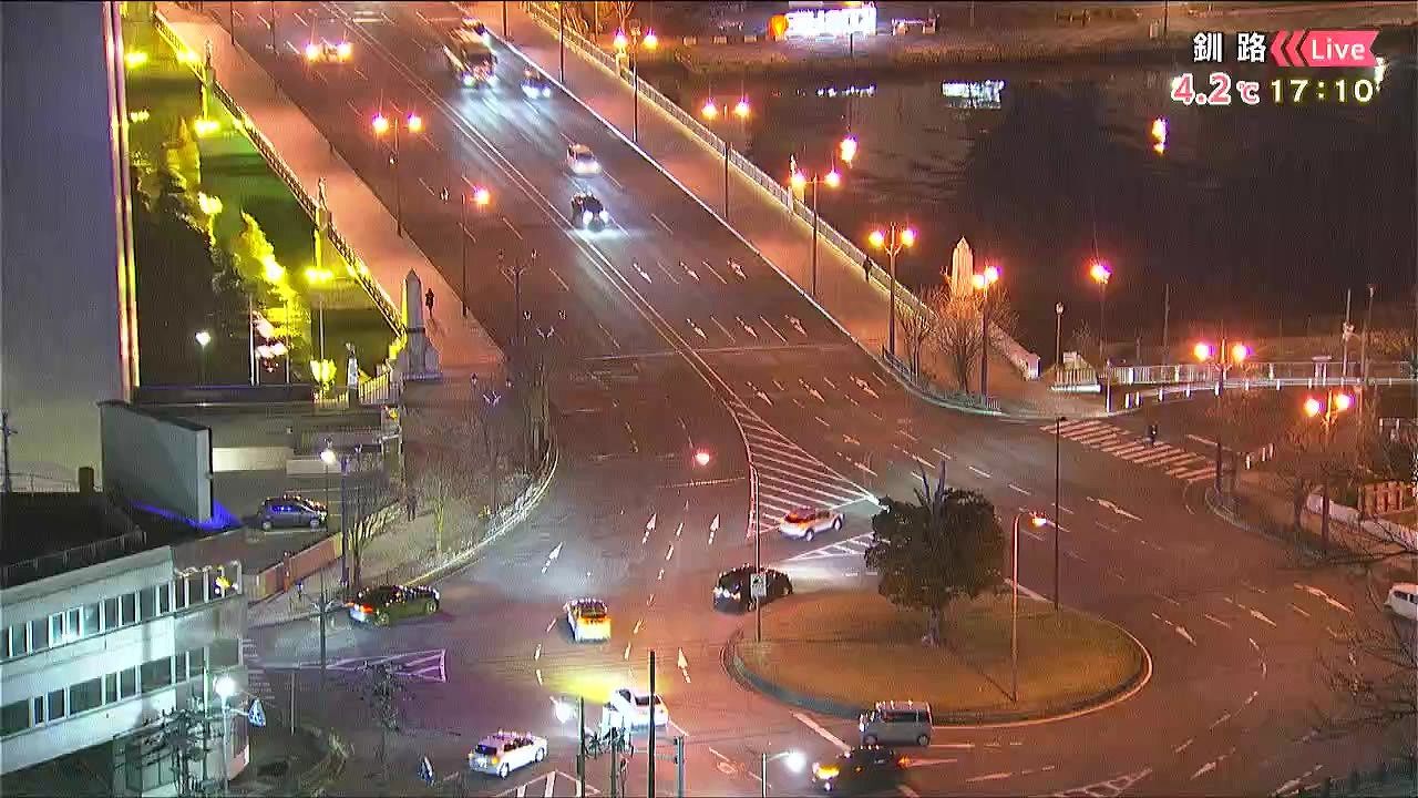 ライトアップされた幣舞橋。あす4日(木)にかけて、道東でも雪が積もりそうですね。