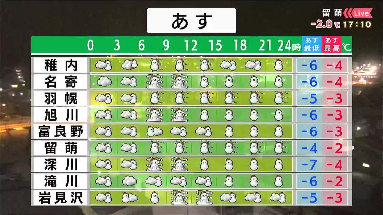 朝から雪や風が強まります。石狩北部では猛吹雪に警戒、幌加内町など上川北部や岩見沢など南空知では30センチ前後の大雪に注意が必要です。