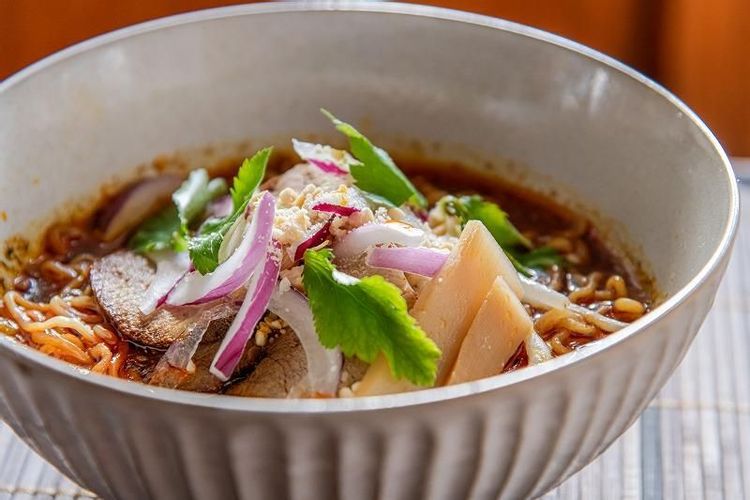 到着するやいなや「ちょっと待っててよ。いま食わせたいものがあるから」とX氏。待つこと10分、彼がおぼんにのせて持ってきたのは複雑かつ香ばしいスパイスの匂いを漂わせるラーメンだった。