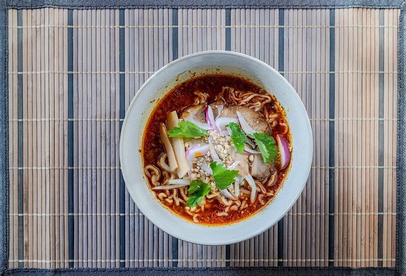 かねてからX氏はカレーづくりと並行してラーメンづくりも趣味としており、店舗開業に向けてのメニュー開発の工程で、偶発的に生まれたのがこのラーメンだという。