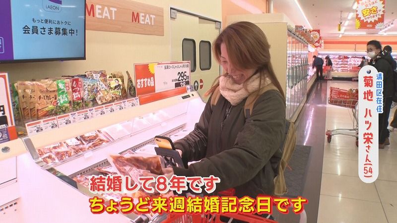 ハツ栄さん:「夫が好きなので…お刺身ブリは。結婚して8年です。ちょうど来週結婚記念日です。結婚記念日と私の誕生日が同じ日なので、2人で外食に行くようにはしています。周りからも言われているので、多分仲いいのかなと思っています」