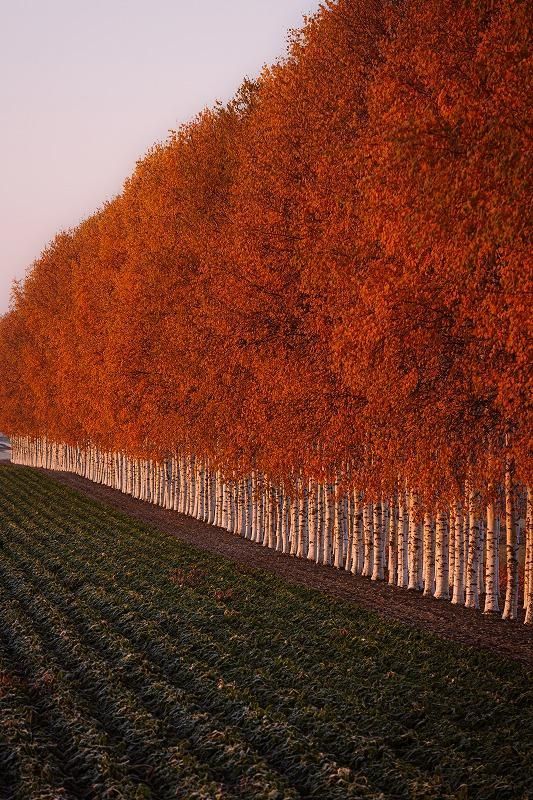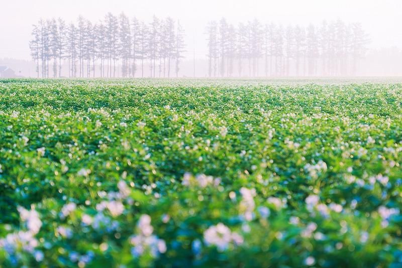 防風林の色合いもその季節に合わせて変化し、畑には四季折々の作物が実っています。