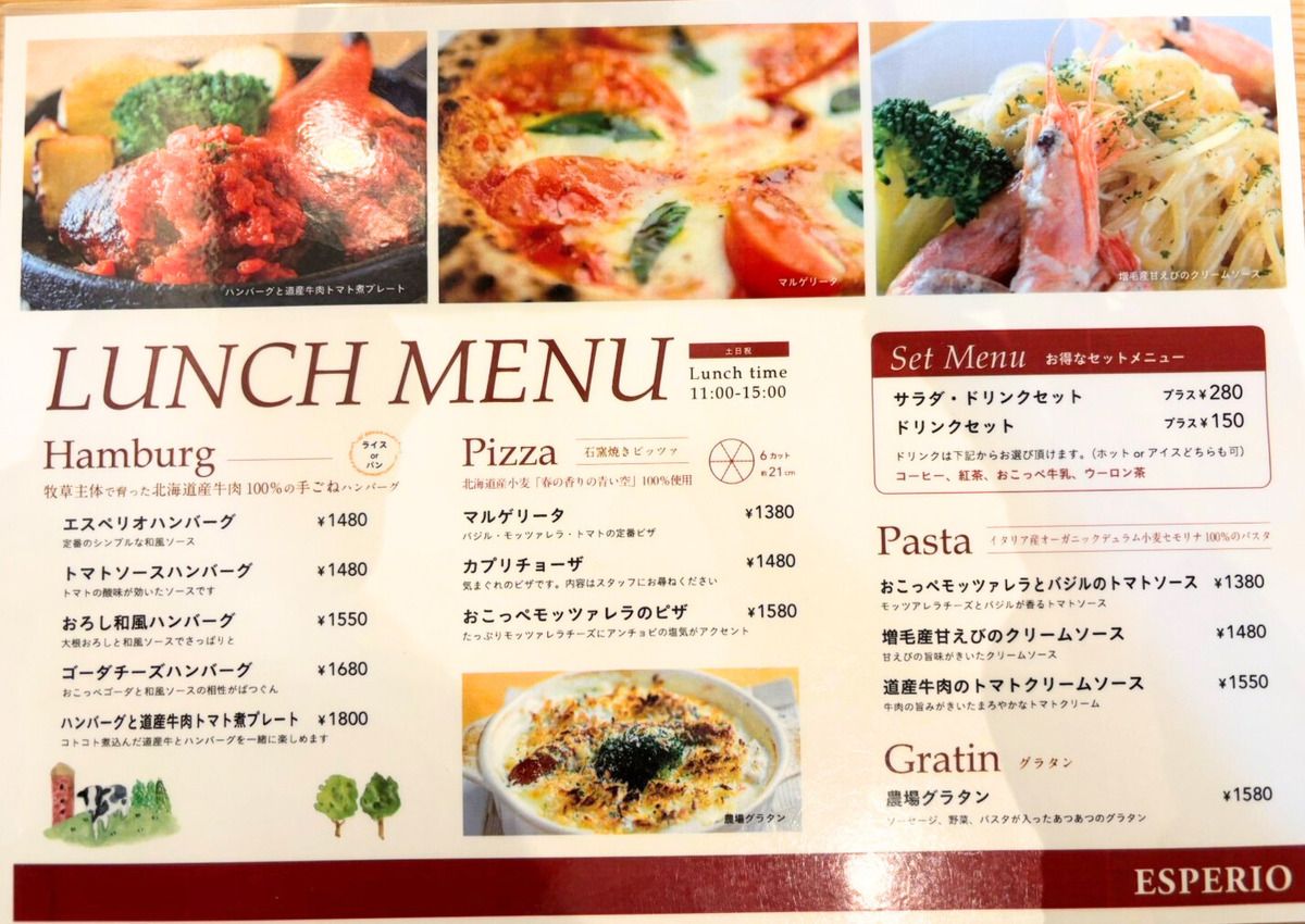 メニューはハンバーグを中心にピザやパスタなどがあります。