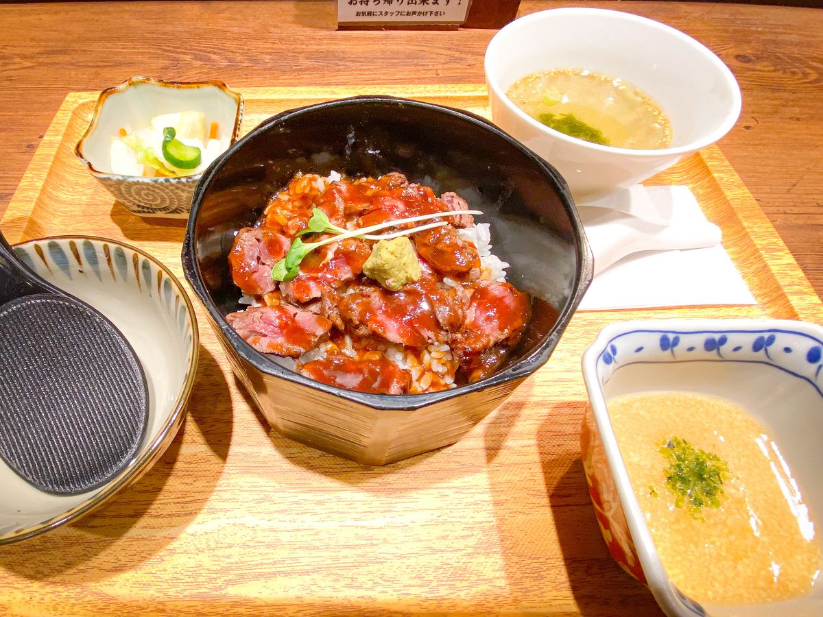こちらは、「牛炙りステーキおひつめしセット 1,518円(税込)」。