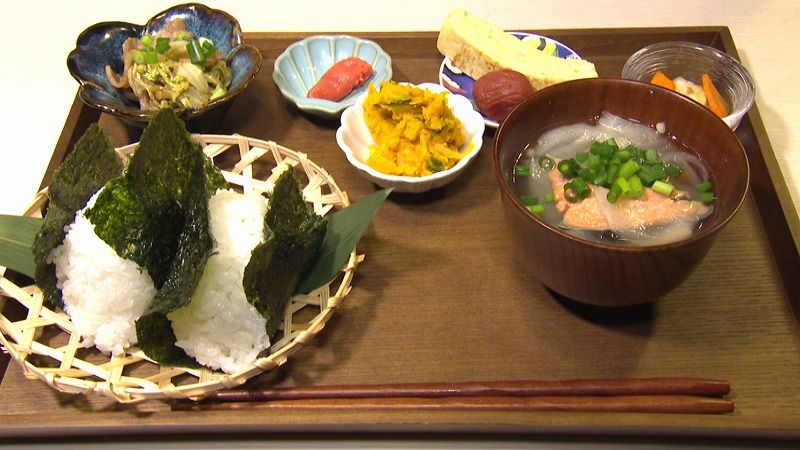 なかでも人気なのが海苔をさっと炙って巻く塩結びが2個と、汁物、小鉢がセットになった『おにぎり御膳』です。