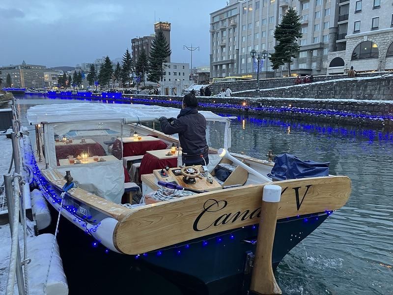 その景色を、船の上から楽しめるのが「小樽運河こたつクルージング」です。