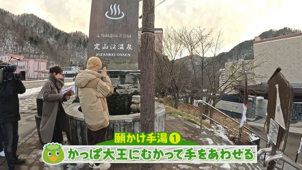 松尾アナ:「『かっぱ家族の願掛け手湯』です。佐藤さんの願いも叶うかも…」