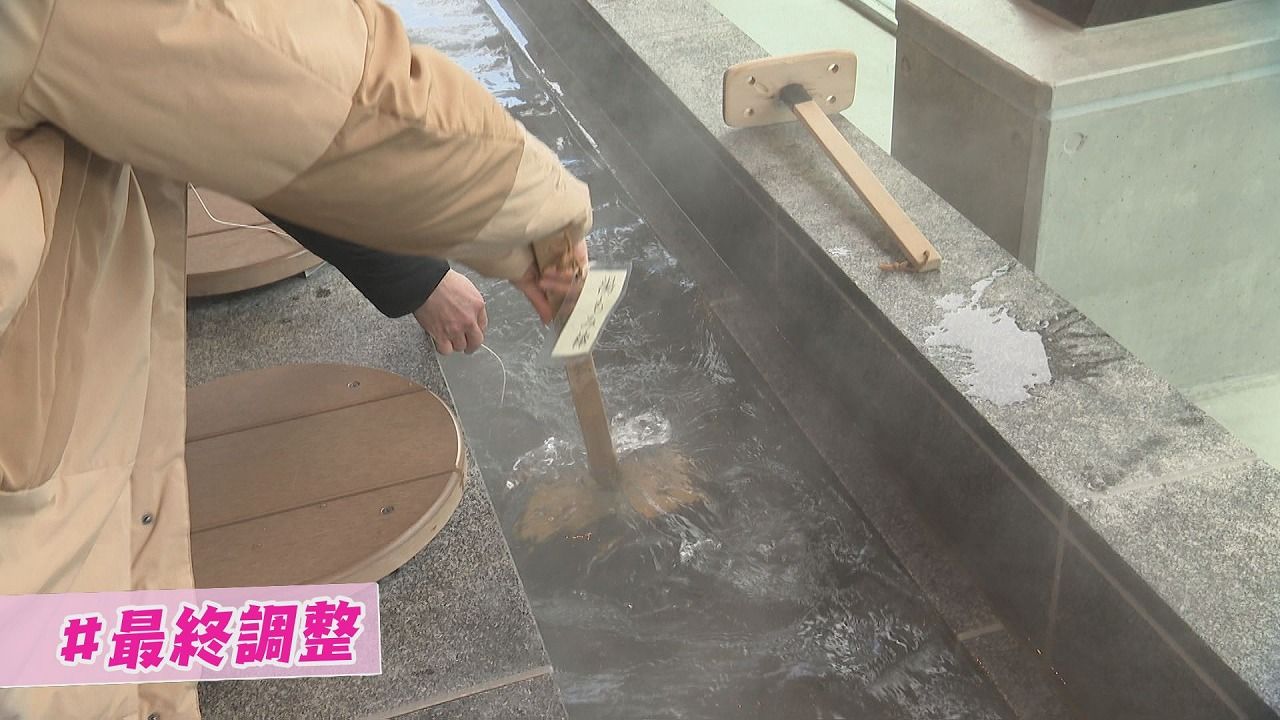 橘さん:「ここ『二見の足湯』は2024年にできたばかりの足湯なんですけれども、午前9時のオープンを前にお客さんにちょうどいい湯加減になるように『湯もみ』をして適温にしてただければと思います」