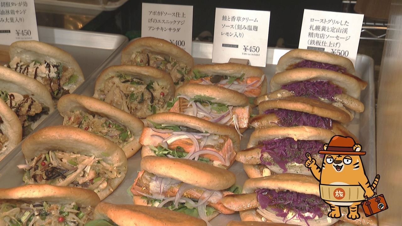 この日は、和食と洋食の料理人が作る、お惣菜を挟んだオリジナルのパンなどがたくさん並んでいたよ!