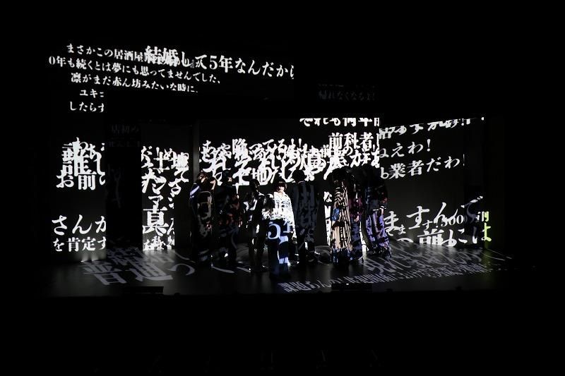 照明や音響の効果で世界観はガラッと変わります。 映像表現も使いながら、視覚的にずっと楽しめる舞台作品となっています。