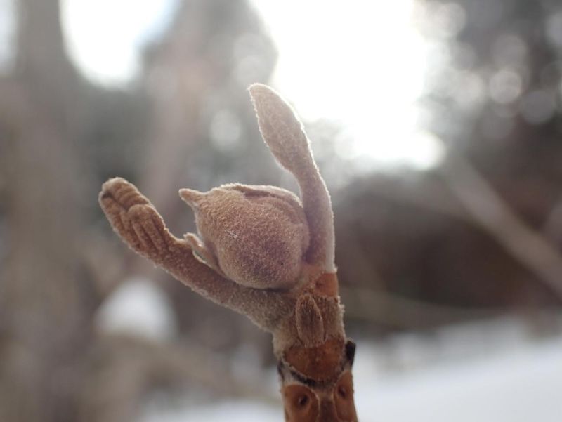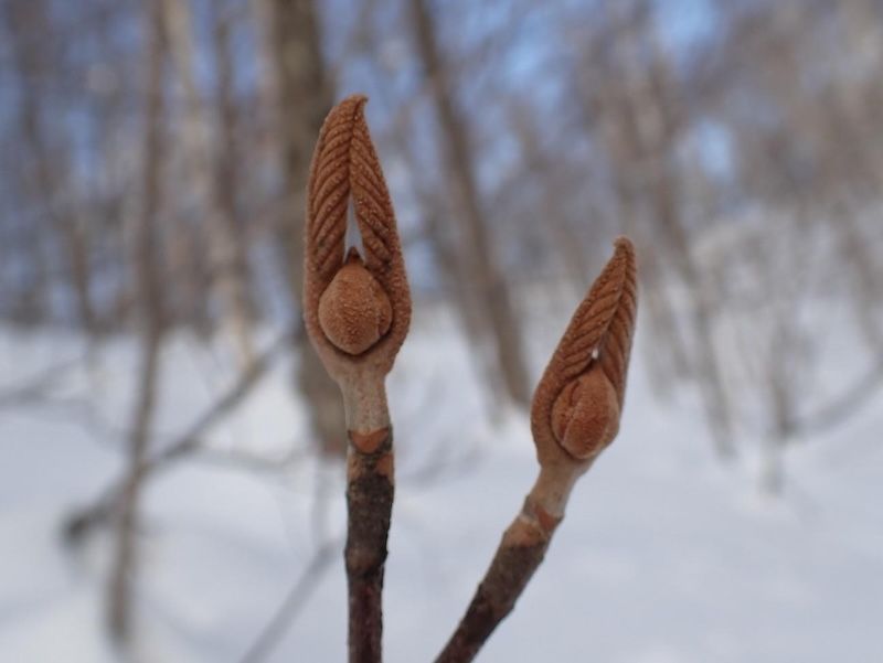 出かけるここまで紹介したのは「葉っぱが落ちた跡=葉痕」ですが、冬の森でもう一つ楽しいのが「冬芽(ふゆめ)」です。