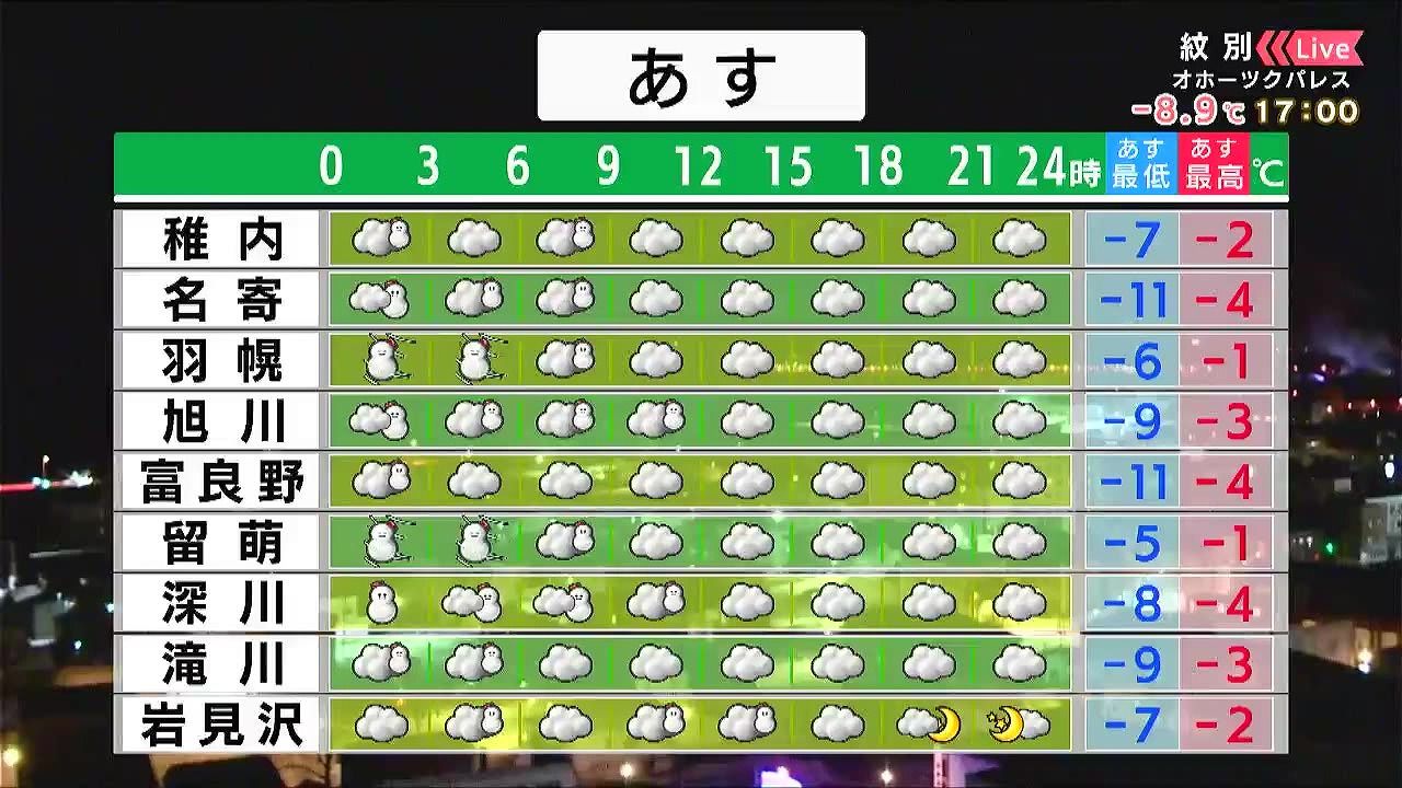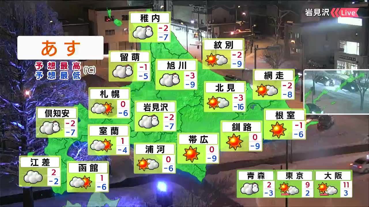 日本海側の雪も日中にはしだいにやみ、割合穏やかに経過するでしょう。きょう12日(金)ほどではないですが、あす13日(土)も寒さが続きます。札幌の最高気温は0度です。
