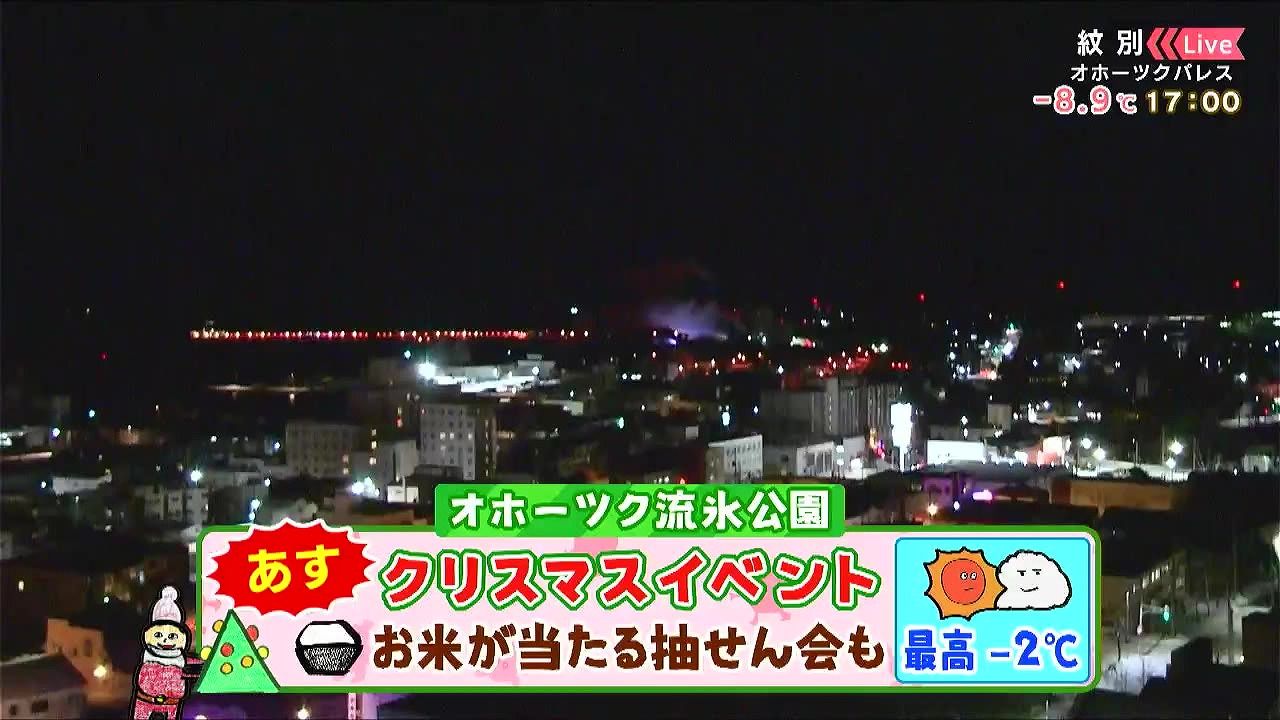 紋別のオホーツク流氷公園であす13日(土)、クリスマスイベントが開催されます。