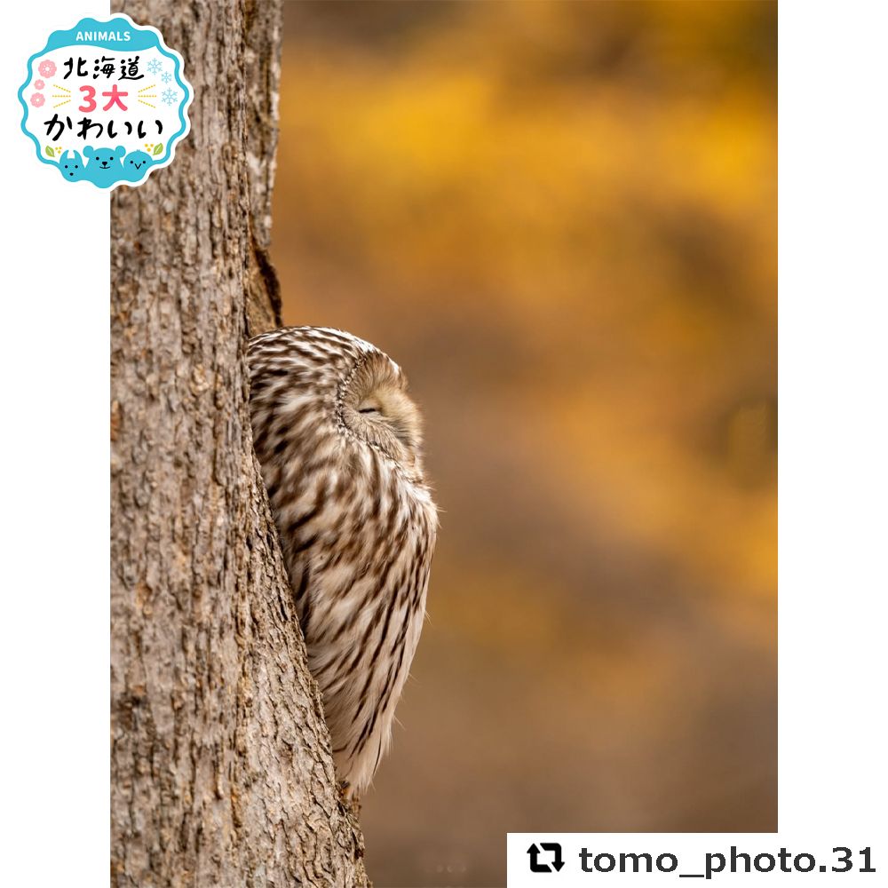 目が開いているので、エゾフクロウだ!とすぐにわかりますが、目をつぶっているときだと、本当に木に同化していて、近くを通ってもまったく気づかないかもしれません。