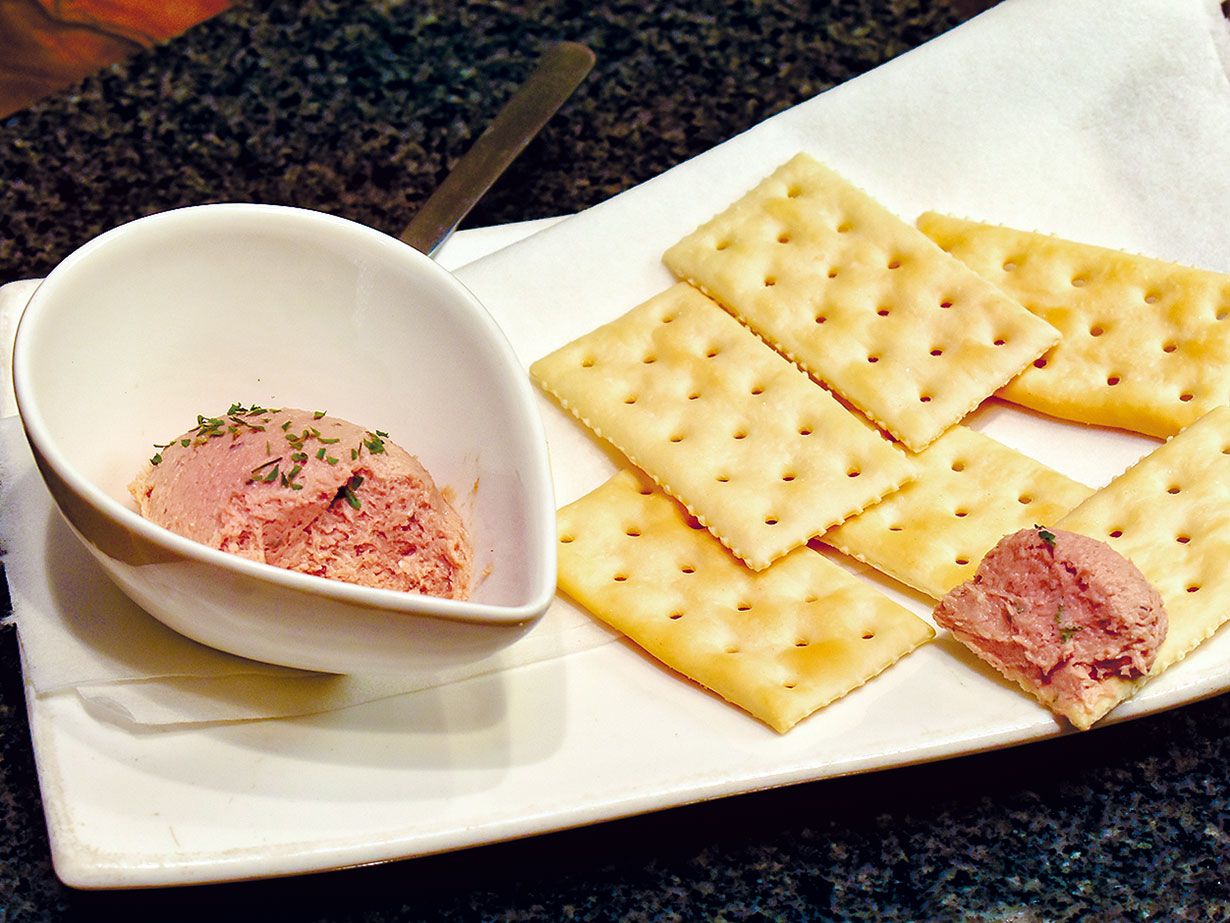 口当たりの良い滑らかなペーストを、まずはひと口。パンチのある塩気が一気に広がり、その後にレバーの濃厚な旨みが心地よく続きます。臭みと評価される部分は魅力でもある―とあえて消し切らず、岩塩とブラックペッパーで絶妙な味付けを施しました。赤ワインと合わせれば、うーん!クセになっちゃう味わいです。1人前990円。