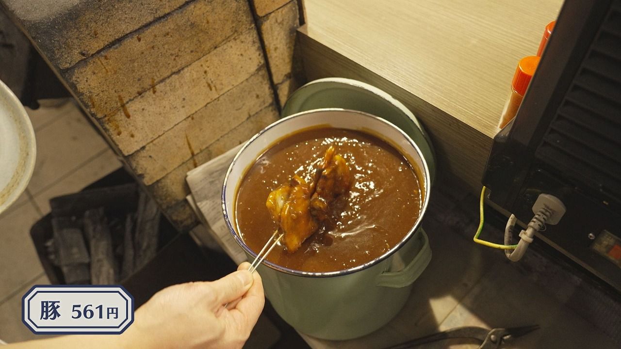 そして創業時から使っている秘伝タレをたっぷりつけた豚串!