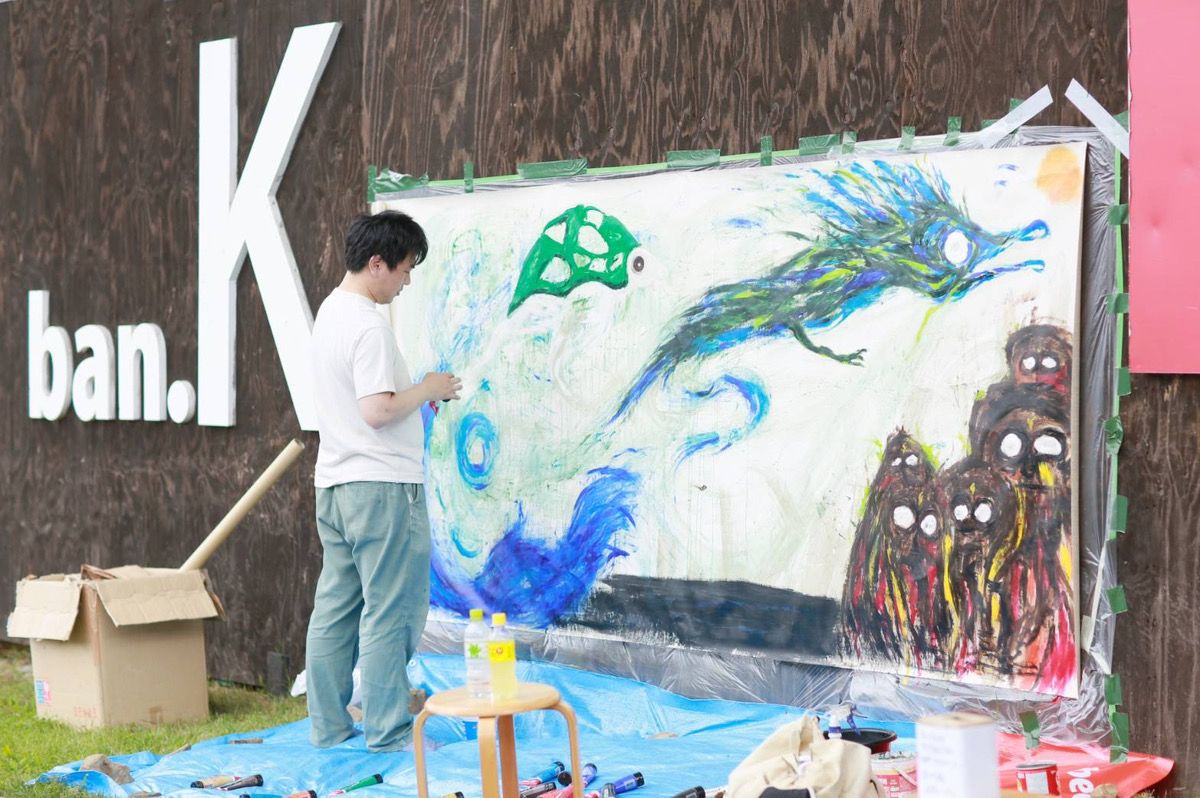 会場や音楽と一体になりながら、その場で絵を描く「ライブペインティング」というパフォーマンスアートを行う。このパフォーマンスは観客も参加し、会場に集まったエネルギーを取り込みながら即興で描き上げていくため、作品が完成するまでの過程も楽しむことができる。
