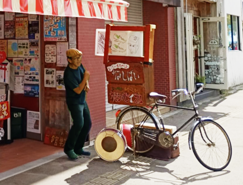 函館を拠点に活動している紙芝居屋さん。“みたけんちゃん”こと三田けんじさんと、“てっちゃん”こと平島てつじさんが迫力のある語りと、大きな絵が魅力の紙芝居を披露。昭和の路地裏を思わせるどこか懐かしい雰囲気の中で、子どもには物語の楽しさを、大人には昔を思い出すような温かい時間を届けている。