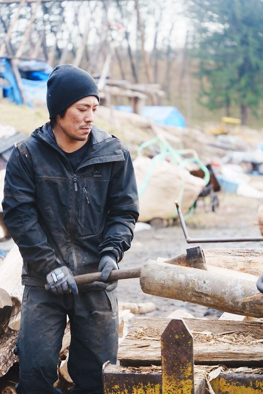 ここは道内でも珍しい、木炭を作る作業場です。