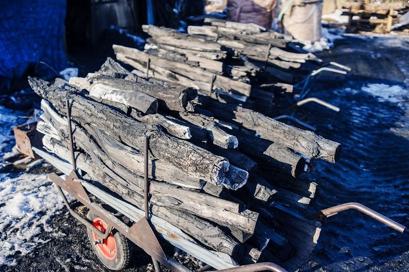 切り終わった後は袋に詰めて、製品として木炭が完成しました。
