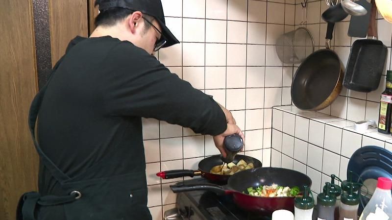 ジャガイモ、ニンジン、ゴボウ鶏肉など10種類以上の食材を次々に調理。