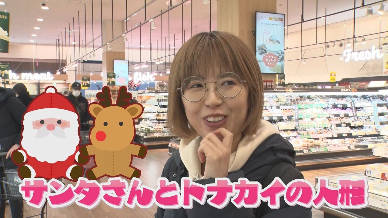番組スタッフ:「サンタさんからのプレゼント届くといいですね。サンタさんとトナカイの人形」