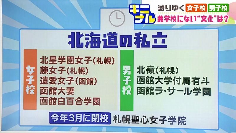 現在、道内の女子高と男子校は8校だけになっています。