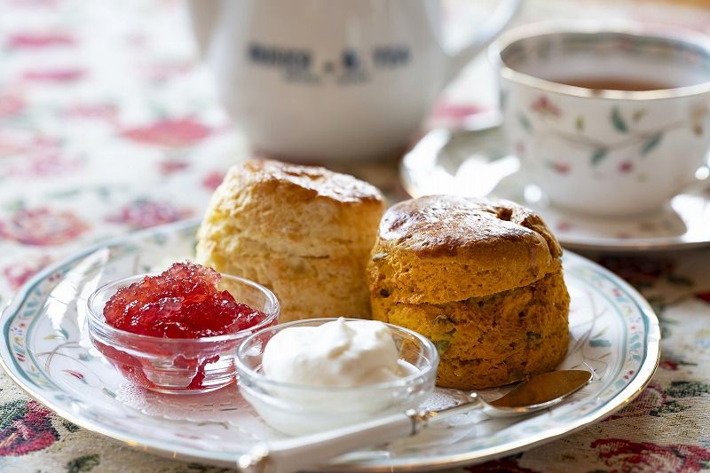 サクサクしっとりの食感が人気のスコーンは、プレーンやかぼちゃ、チーズなどのほか、季節限定の味を含めて12種類。これには、よつ葉のバター、牛乳、生クリームが使われています。