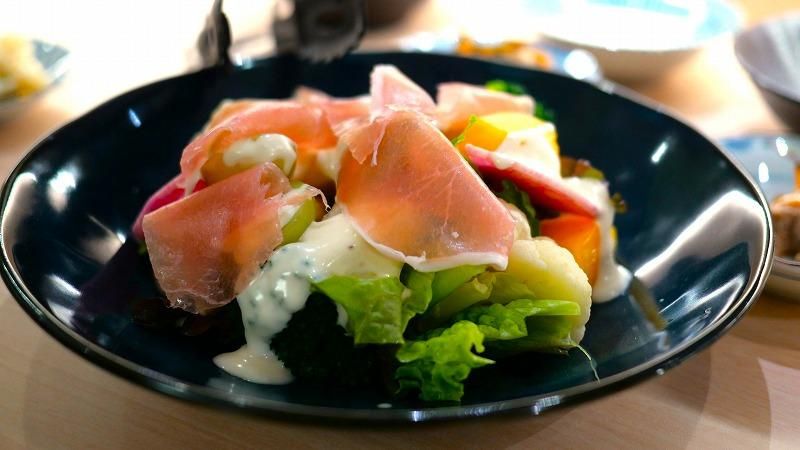 生ハムと旬の果物の野菜サラダは、さすが、大地ノ青果店さんが『よかれ』と思って始めたお店のサラダって感じ^^