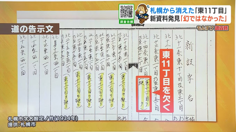 札幌市・住民情報課の下澗聡課長によると「一旦、1934(昭和9)年のときは、東11丁目を設定したが、道がないところに無理矢理設定した経緯がある」といいます。