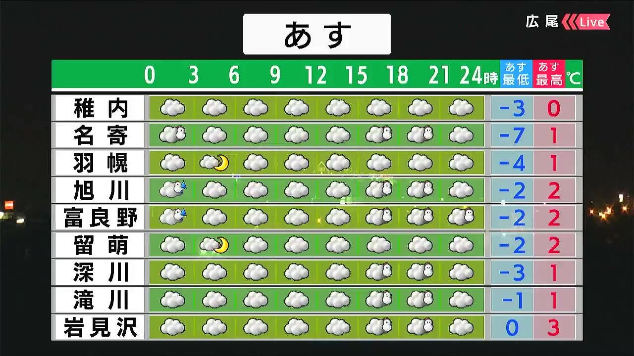 あす25日(木)にかけても岩見沢では、ほとんど雪は積もりません。ただ、あすの道内はきょう24日(水)より雪の降るところが多くなります。